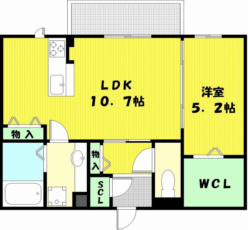 | LDK 10.7帖 、洋室 5.2帖 | |